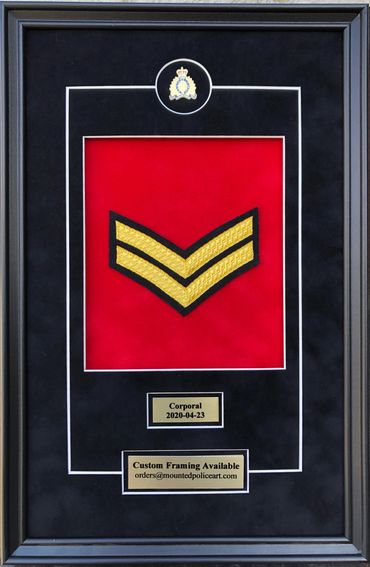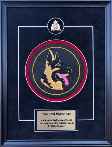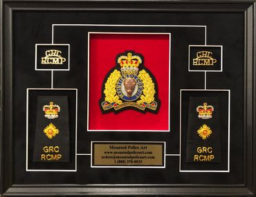 Large RCMP Crest measuring 6″ x 7″ with a plate including member’s Depot Graduation information.